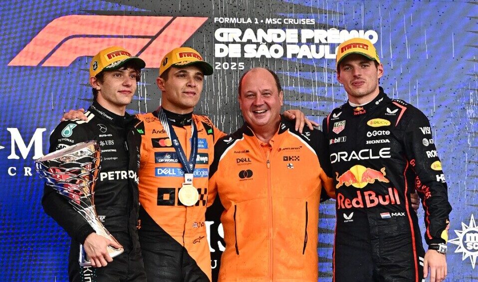 Lando Norris allunga in campionato dopo la vittoria in Brasile, davanti alla Mercedes di Kimi Antonelli e alla Red Bull di Max Verstappen, terzo dopo essere partito dalla pitlane.