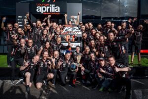 Con la vittoria di Marco Bezzecchi nella gara lunga del GP del Portogallo, Aprilia Racing si assicura aritmeticamente il secondo posto nel Campionato Costruttori con 387 punti, a una gara dal termine della stagione. Con tre vittorie (Marco Bezzecchi a Silverstone e Portimão e Raúl Fernández a Phillip Island) è la stagione più vincente nella storia di Aprilia Racing in MotoGP. Lorenzo Savadori ha continuato il programma di sviluppo della RS-GP25 in condizioni di gara, chiudendo in sedicesima posizione. Da segnalare l’ottima prestazione di Ai Ogura, del Trackhouse MotoGP Team, autore di una gara in rimonta dalla dodicesima casella in griglia, fino alla settima posizione, risultando la seconda RS-GP25 a punti.