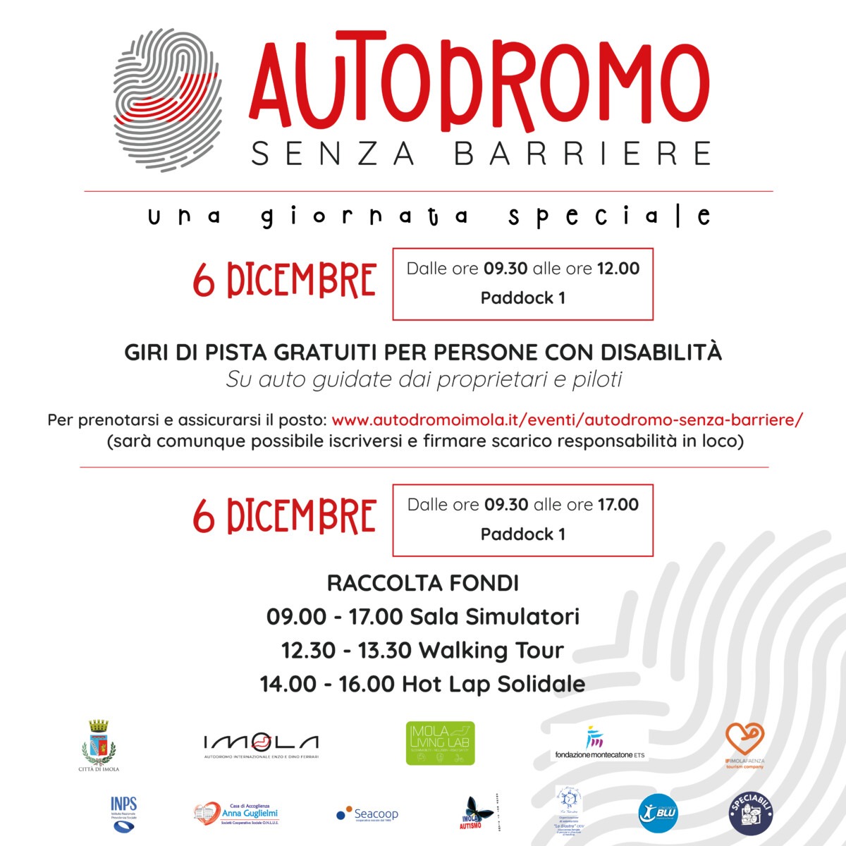 Dopo il grande successo delle precedenti edizioni, torna “Autodromo Senza Barriere”, la manifestazione dedicata alle persone con disabilità. L’iniziativa è promossa dal Comune di Imola e dall’Autodromo Internazionale Enzo e Dino Ferrari, in collaborazione con la Fondazione Montecatone e numerose associazioni del territorio. L’appuntamento è fissato per sabato 6 dicembre 2025, a partire dalle ore 9.30, nel Paddock 1 dell’Autodromo. Per tutta la giornata, saranno disponibili numerose attività rivolte alle persone con disabilità, agli accompagnatori e a tutti coloro che desiderano partecipare a questo evento solidale. La pista di Imola aprirà le sue porte a un’esperienza unica e gratuita: giri di pista riservati esclusivamente a persone con disabilità, a bordo di vetture guidate da piloti e proprietari, per vivere in piena sicurezza l’emozione della velocità e il fascino delle quattro ruote. L’iniziativa, ormai divenuta un punto di riferimento nel calendario delle attività inclusive dell’Autodromo, vedrà quest’anno la partecipazione di molte nuove associazioni, che hanno aderito sull’onda dell’entusiasmo e del successo della scorsa edizione.