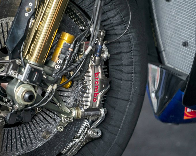 Nel 2020 il Circuit Ricardo Tormo ospitò due GP a distanza di 7 giorni: nel GP Europa Joan Mir conquistò quella che è ancora oggi la sua unica vittoria in MotoGP e il compagno di squadra Alex Rins fu 2°. Le loro Suzuki disponevano, così come le rivali, della nuova pinza Brembo GP4, la prima a introdurre le alette sul corpo esterno, con effetti benefici sul raffreddamento. Quell’anno inoltre fu ridotta la quantità di fluido all’interno dell’impianto frenante, al fine di diminuire la spugnosità della leva e garantire prestazioni più costanti.