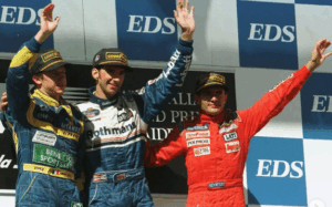 Terzo arrivò il nostro Gianni Morbidelli su Footwork Hart, che rese dolce la levataccia dei tifosi italiani. Il GP si correva alle 4 di mattina italiane, nessuno pensava di spostare gli orari per rendere accettabile la visione dei GP a chi era in altri continenti. Il terribile incidente di Mika Hakkinen durante le prove ci aveva fatto ritornare alla mente pensieri drammatici ancora troppo vivi nella mente di tutti con le ferite ancora aperte di un 94 terribile. Fu l’ultimo GP di F1 in cui si sentì rombare un V12, Ferrari ovviamente.
