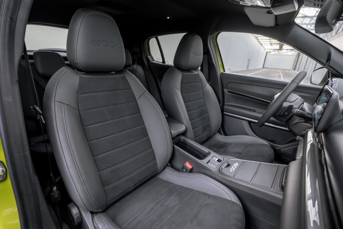 Il design esterno della Fiat 600 Sport Edizione Milano Cortina 2026 è un inno alla passione e al carattere, energico e inarrestabile. Alle sette tinte di carrozzeria, si aggiunge una nuova e distintiva livrea Verde Mediterraneo, disponibile anche in abbinamento con il tetto nero a contrasto, che esprime vigore ed energia, creando un contrasto audace con i cerchi in lega da 18” a finitura dark. Inoltre, i dettagli neri che decorano la griglia, le maniglie ed altri elementi della carrozzeria, accentuano il carattere sportivo, unico e deciso di questa edizione speciale. Il badge Milano Cortina 2026, posizionato sul montante laterale, diventa il segno distintivo della collaborazione.