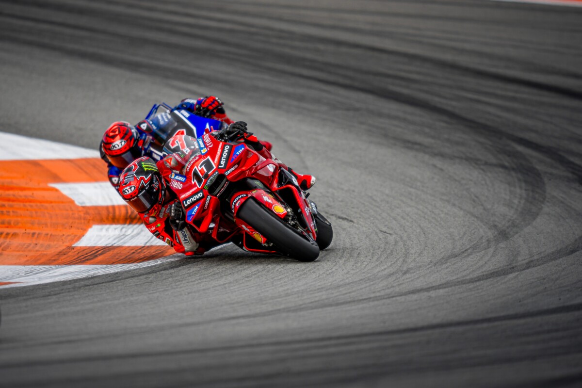 Il Ducati Lenovo Team ha completato l’edizione 2025 del Campionato di MotoGP con l’ultima gara della stagione al Circuito Ricardo Tormo di Valencia. Nicolò Bulega è transitato 16° sul traguardo, mentre Francesco Bagnaia è caduto nella bagarre del primo giro. Undicesimo nel warm up, dopo una partenza complessa Bulega ha chiuso la corsa al 15° posto. Bagnaia è scattato bene dalla sesta fila, risalendo fino alla decima posizione. Alla curva 4, dopo un contatto, Pecco è uscito di pista, terminando la gara e la stagione con un ritiro. Unica consolazione, Fabio Di Giannantonio (VR46 Racing Team), terzo, consegna a Ducati l’ottantottesimo podio consecutivo.