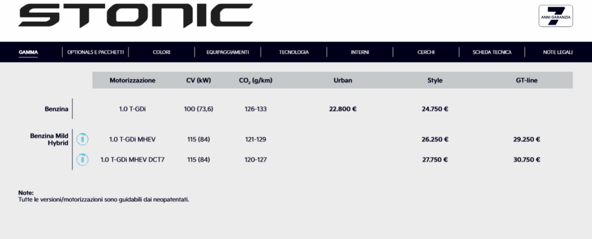 - 1.0 T-GDi benzina da 100 CV (manuale, trazione anteriore)