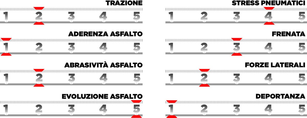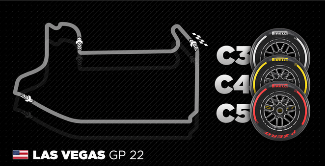 Per il terzo anno consecutivo, le mescole selezionate per il Gran Premio cittadino di Las Vegas sono C3, C4 e C5. Una delle sfide principali sarà la gestione della temperatura degli pneumatici, soprattutto nelle qualifiche. L’anticipazione delle sessioni di pista sarà un aiuto per i piloti che troveranno così condizioni meno rigide che facilitano il riscaldamento delle gomme. Sarà comunque cruciale effettuare un giro di preparazione prima di quello lanciato per portare le mescole nella corretta finestra di utilizzo. I pneumatici di quest’anno presentano inoltre proprietà meccaniche migliorate, che dovrebbero ridurre il degrado, particolarmente evidente lo scorso anno sulla mescola media. La scelta di non optare per un tris ancora più morbido è legata al rischio che il graining, comparso fin dalla prima edizione, possa compromettere eccessivamente l’efficacia dell’attuale mescola più morbida della gamma.