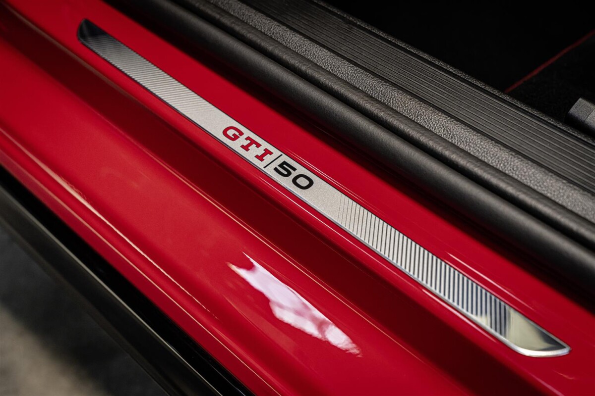 All’esterno, il logo GTI 50 è posizionato sullo spoiler del tetto e sugli specchietti retrovisori esterni. Altre caratteristiche esclusive includono finiture speciali sulle soglie delle porte, tetto nero, calotte degli specchietti retrovisori esterni nere e finiture nere dei terminali di scarico. Una vistosa striscia laterale sui longheroni con una sfumatura di colore dal nero al Tornado Red sottolinea ulteriormente il carattere sportivo.