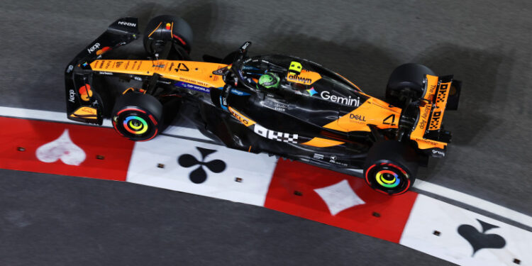 Il leader del campionato Lando Norris (McLaren) è stato il più veloce nella prima giornata di attività in pista al GP di Las Vegas, firmando un tempo di 1:33.602 nelle FP2, disputate due ore prima rispetto allo scorso anno. Secondo posto per Kimi Antonelli con la Mercedes, staccato di 0”029 dall’inglese, mentre Charles Leclerc è terzo con la Ferrari, utilizzando le gomme Medie a differenza dei due davanti su Soft, a 0”161 dalla McLaren. Il pilota monegasco ha concluso la sessione con la vettura ferma in una via di fuga a causa di un problema tecnico.