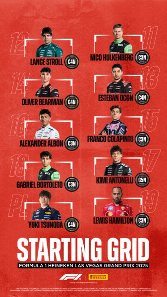 Mario Isola, direttore motorsport Pirelli: “Non ci saremmo mai aspettati di vedere una qualifica bagnata in mezzo al deserto ma Las Vegas continua a stupirci. Le prove di questo pomeriggio avevano fornito delle informazioni utili ai team perché sono state percorse per più del 30% dei giri su gomme da bagnato ma evidentemente non sufficienti per comprendere subito la mescola giusta con cui iniziare le qualifiche. Dopo un primo tentativo con le Intermedie, infatti, si è subito capito che le condizioni richiedevano le Full Wet. Le gomme da bagnato estremo hanno garantito ai piloti una buona aderenza per i primi giri cronometrati, prima che la pista iniziasse ad asciugarsi e permettesse il passaggio alle Intermedie.