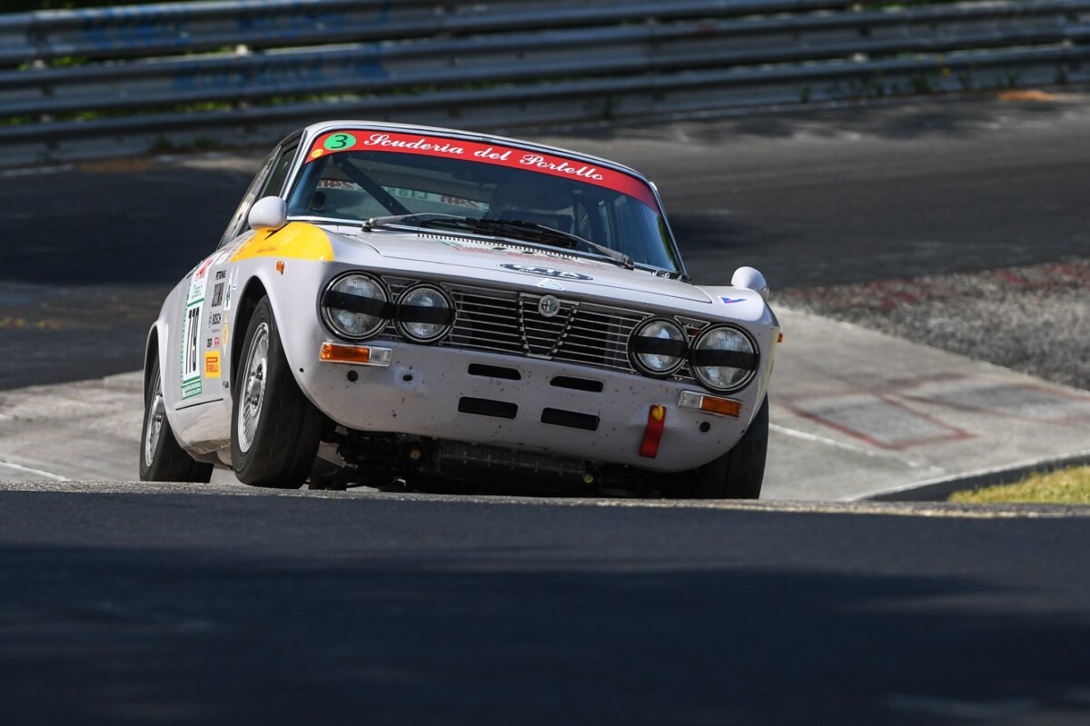 Allo stand della Scuderia un’Alfa Romeo Giulia Super Giardinetta (1972) in uso alla Polizia Stradale, costruita dalla Carrozzeria Giorgetti, e prodotta in 324 esemplari per i servizi autostradali e i servizi di emergenza. Nel 1997 venne rilevata dall’attuale proprietà che la diede in carico alla Scuderia del Portello per il restauro con la livrea ufficiale del Team Alfa Romeo di Arese e viene utilizzata dalla Scuderia del Portello come vettura di assistenza a seguito dei piloti e dei clienti durante le gare in pista e di regolarità. Nel 2010 ha preso parte al “Raid della Fratellanza e della Pace” da Shanghai a Milano. L’Alfa Romeo GTV 2000 GROUP 1 (1974, ex AUTODELTA) corse nel 1974 alla 24Ore di Spa-Francorchamps con Zeccoli – Donà e, sempre nello stesso anno, al Giro d’Italia con de Adamich – Avenoso. L’equipaggiamento stradale da gara è stato riprodotto nella totale originalità. Dopo il restauro e la preparazione a cura della Scuderia del Portello, ha debuttato al 4°Trofeo GTA al Motor Show di Bologna 2017 e, l’anno successivo, ha ottenuto il primo posto di classe all’endurance di 3 ore della 24 Ore del Nürburgring sullo storico Nordschleife, nonché il primo posto di classe all’AvD-Oldtimer-Grand-Prix sempre al Nürburgring. Con l’ex pilota Autodelta G.L.Picchi ha inoltre partecipato al Motorlegend Festival 2018 a Imola e alla 300 km di Vallelunga del 2019.