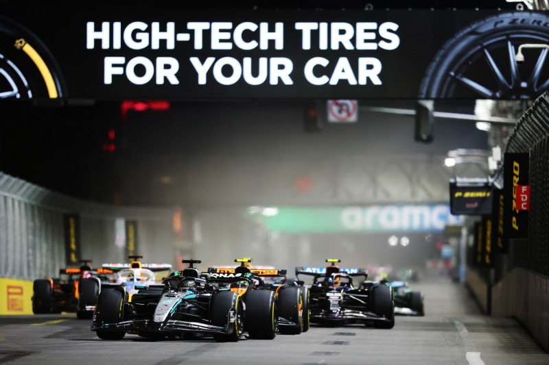 La maggior parte dei piloti è partita con la gomma Media, mentre cinque piloti – le Sauber di Nico Hulkenberg e Gabriel Bortoleto, Alex Albon (Williams), Franco Colapinto (Alpine) e Lewis Hamilton (Ferrari) – si sono schierati in griglia con la Hard. Kimi Antonelli (Mercedes), poi penalizzato per partenza anticipata, è stato l’unico a partire con le Soft. Allo spegnimento dei semafori, Norris è stato troppo aggressivo nel difendere la pole position, andando largo alla prima curva e permettendo così a Verstappen e Russell, che nel frattempo avevano superato Carlos Sainz, di passare davanti alla McLaren. A metà gara (25° giro) Verstappen aveva accumulato un vantaggio sufficiente a effettuare il pitstop (passando da Medium a Hard, una mescola che si è dimostrata molto consistente) e tornare in pista davanti a Russell, secondo sul tracciato. Entrambe le mescole usate hanno permesso ai piloti di spingere durante tutta la gara, confermando la strategia a una sola sosta con Medium e Hard come la più veloce.