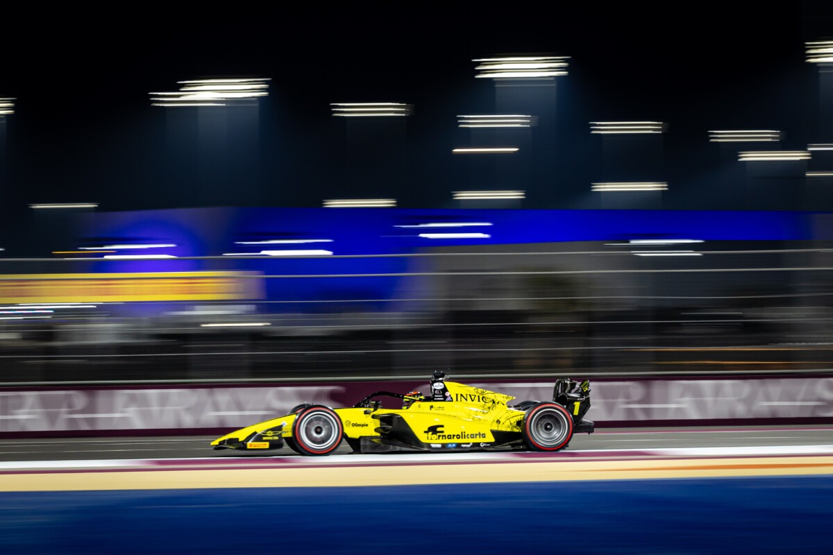 Leonardo Fornaroli partirà dalla pole position in Qatar. Il pilota italiano aveva chiuso al secondo posto la qualifica, ma sale al primo posto in griglia per la penalità di tre posizioni per impeding data a Oliver Goethe. Per l’italiano del team Invicta, due punti in una classifica (190 punti contro i 169 di Crawford) che potrebbe già vederlo campione questo fine settimana a Lusail. Ovviamente i punti della pole sono virtuali, verranno cioè assegnati se il pilota partirà nella Feature Race di domenica.