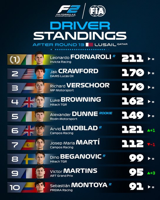 Giovanni Battista Tombolato, Sub Commissario ACI: “Il titolo della F2 subito dopo il successo in F3 é un’impresa riuscita a George Russell, Charles Leclerc, Oscar Piastri e adesso a Leonardo Fornaroli, che accende sogni ancora più grandi in tutti gli appassionati italiani di corse e di F1”.