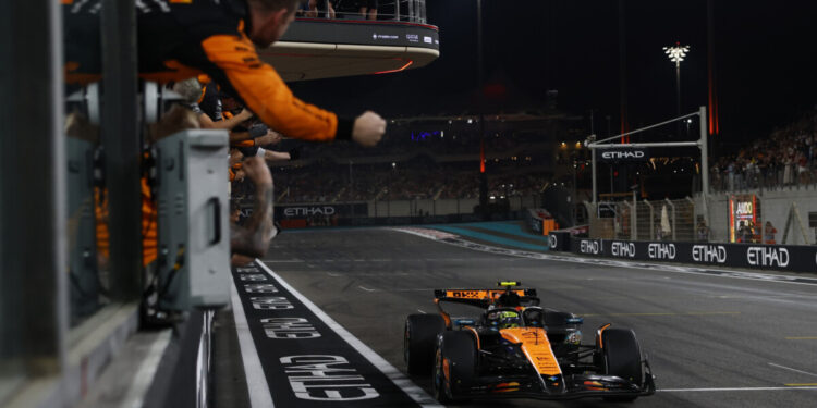 Lando Norris è il trentacinquesimo pilota a diventare campione del mondo di F1 nei 75 anni di storia della serie. Ha ottenuto il titolo grazie a un terzo posto nel GP di Abu Dhabi, aggiungendo questo successo al titolo costruttori già vinto dalla sua scuderia nel Gran Premio di Singapore. Max Verstappen, partito dalla pole position, ha invece vinto la gara mentre l’altro contendente al titolo piloti, Oscar Piastri, è arrivato secondo. Tutti i piloti saliti a podio hanno adottato delle strategie differenti per completare i 58 giri, iniziati alle 17 con ancora la luce solare e terminati dopo circa due ore con il buio. Verstappen è partito sulla Media per poi passare alla Hard al ventiquattresimo giro mentre Piastri ha fatto l’opposto, partendo con la gomma bianca e passando alla gialla al giro 42. Norris ha invece effettuato due soste, montando la Media in griglia e completando poi due stint sulla Hard fino al traguardo.