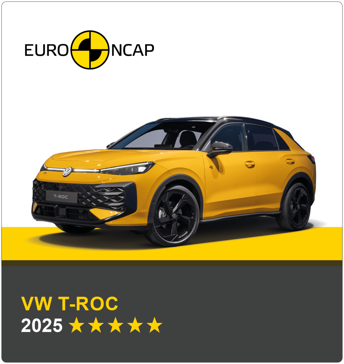 La nuova T-Roc ha ottenuto punteggi elevati nei test Euro NCAP, che includono la protezione degli occupanti adulti, la protezione dei bambini e la protezione degli utenti vulnerabili della strada, oltre alla protezione dei pedoni. Inoltre, il team di test Euro NCAP pone grande enfasi sulla prevenzione degli incidenti. Anche in questo ambito, il nuovo SUV compatto Volkswagen, dotato di numerosi sistemi di assistenza alla guida e frenata d’emergenza di serie anche nella versione base, ha ottenuto ottimi voti dalla commissione di test.