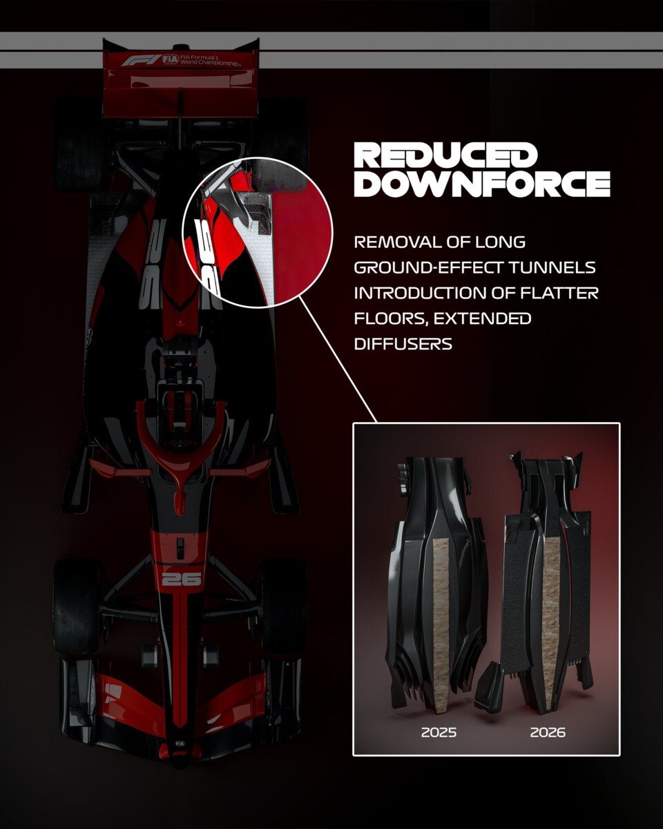 • Aerodinamica attiva: alettoni anteriori e posteriori mobili sostituiscono il sistema di riduzione della resistenza aerodinamica (DRS) per configurazioni ad alta e bassa deportanza, consentendo maggiore aderenza e velocità dove i piloti ne hanno più bisogno.