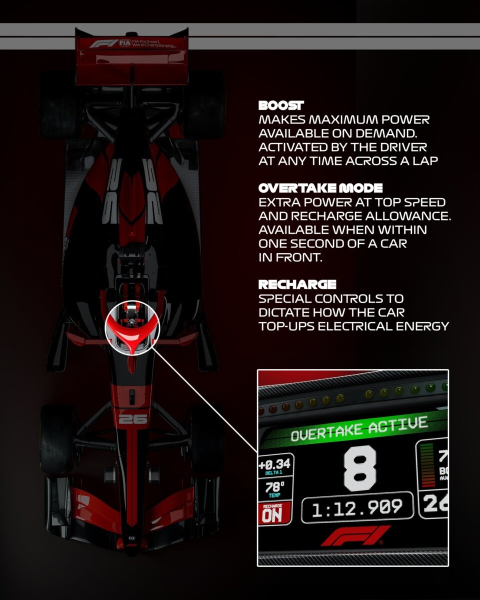• Funzione: consente ai piloti entro un secondo da una vettura che precede di utilizzare una potenza extra per effettuare un sorpasso. Sostituisce il DRS e facilita i sorpassi in pista, essendo uno strumento strategico da utilizzare in una sola volta o distribuita su un giro.