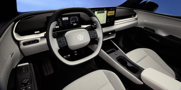 Due grandi display, disposti allo sguardo lungo un singolo livello, definiscono la nuova architettura della plancia. Questi includono la strumentazione digitale dietro il volante, con una diagonale dello schermo di 26,0 cm (10,25 pollici), e il touchscreen da 33 cm (quasi 13 pollici) del sistema di infotainment, che si distingue nel suo segmento per dimensioni e funzionalità. La grafica è ad alta risoluzione e precisa, e il display centrale è facilmente accessibile anche per il passeggero anteriore. Pulsanti fisici separati per le funzioni di climatizzazione e le luci di emergenza sono integrati in una striscia sotto lo schermo dell’infotainment. Il volante multifunzione è anch’esso completamente nuovo, con distribuzione dei pulsanti chiaramente strutturata. Tra il vano porta smartphone e i portabicchieri si trova una rotella, facilmente accessibile sia per il conducente che per il passeggero, che consente la regolazione del volume audio oltre alla selezione di tracce media e stazioni radio. L’ID.Light è stata ulteriormente sviluppata: questa striscia luminosa interattiva e intuitiva ora si estende non solo lungo la larghezza del cruscotto alla base del parabrezza, ma anche per la prima volta nelle porte anteriori.