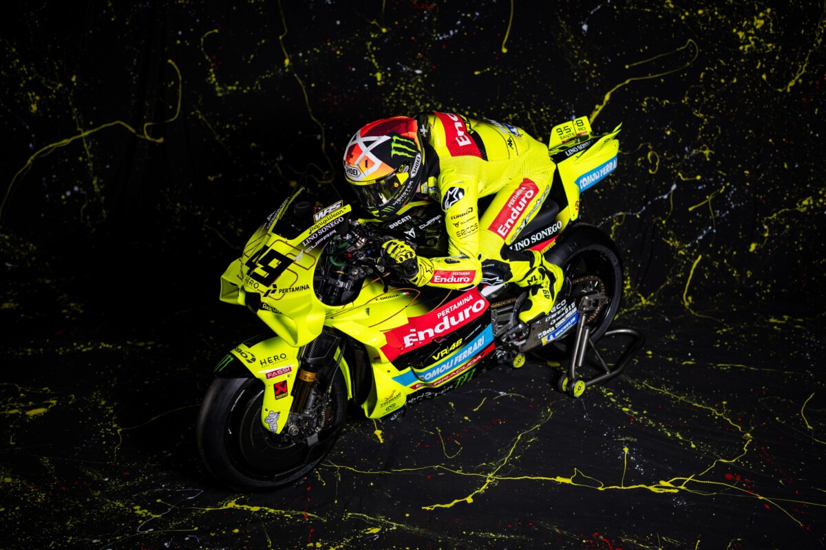 Alessio Salucci – Team Director: “L’obiettivo è quello di lottare per le prime posizioni con entrambi i piloti in ogni weekend. Il livello del campionato è veramente alto, ma noi abbiamo un pacchetto tecnico fornito da Ducati molto importante. Inoltre, abbiamo due piloti fantastici che quest’anno esprimeranno al massimo il loro potenziale. Per questa stagione, con la livrea siamo tornati alle origini: nel 2023 avevamo deciso di staccare dai nostri colori e avevamo puntato sull’eleganza con il bianco. La VR46 è storicamente nera e gialla, a Vale e me piaceva tornare ai nostri colori e così abbiamo fatto. Questa moto è davvero molto riconoscibile, con questo nero e giallo che sono proprio caratteristici del team. Ogni inizio di stagione è il momento di ringraziare a Pertamina Lubricants, Ducati e tutti i nostri partners per il supporto che ci danno e per rendere possibile questo progetto. Speriamo che sia loro, sia tutti i fans che abbiamo in tutto il mondo si divertano ogni weekend con noi.”