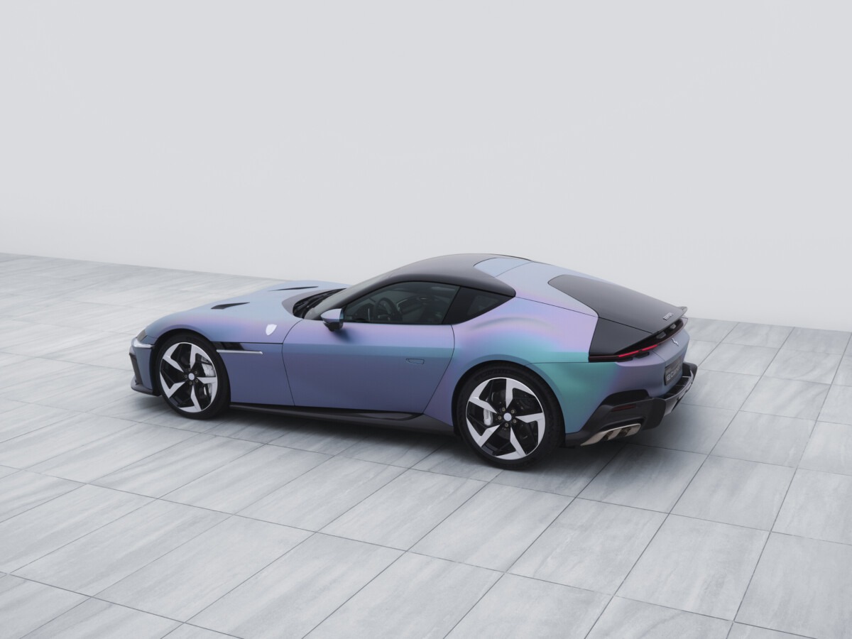 Questa 12Cilindri è immediatamente riconoscibile grazie alla nuova tonalità Yoonseul a verniciatura transizionale, sviluppata appositamente per la vettura. Questo colore unico si ispira alla tradizione coreana, unendo storia e patrimonio della regione con richiami alla ceramica Celadon, con le sue molteplici sfumature di verde, e al fascino della cosmopolita Seoul, pulsante al ritmo del K-pop, della musica elettronica e delle luci al neon dei quartieri più futuristici della città. Il risultato è una finitura vivida e iridescente che varia dal verde al viola con riflessi blu, evocando la luce del sole che scintilla sul mare, Yoonseul in coreano.