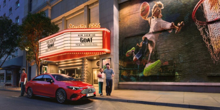 Il fulcro della collaborazione, caratterizzata dal tema “C’è un posto per chi sogna”, è rappresentato dal product placement di tre veicoli Mercedes‑Benz all’interno del film: la nuova CLA 250+, la nuova GLC elettrica e lo Sprinter. L’accordo si amplia ulteriormente attraverso una campagna dedicata che include uno spot da 30 secondi, nel quale vengono illustrate le interazioni tra immaginazione e realtà di una giovane protagonista, dopo aver assistito alla proiezione di GOAT al cinema e durante il tragitto verso casa a bordo di una Mercedes‑Benz CLA insieme alla famiglia.