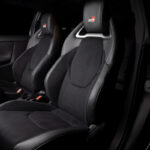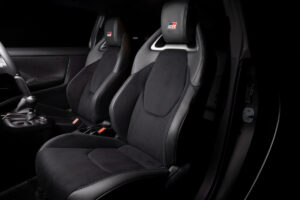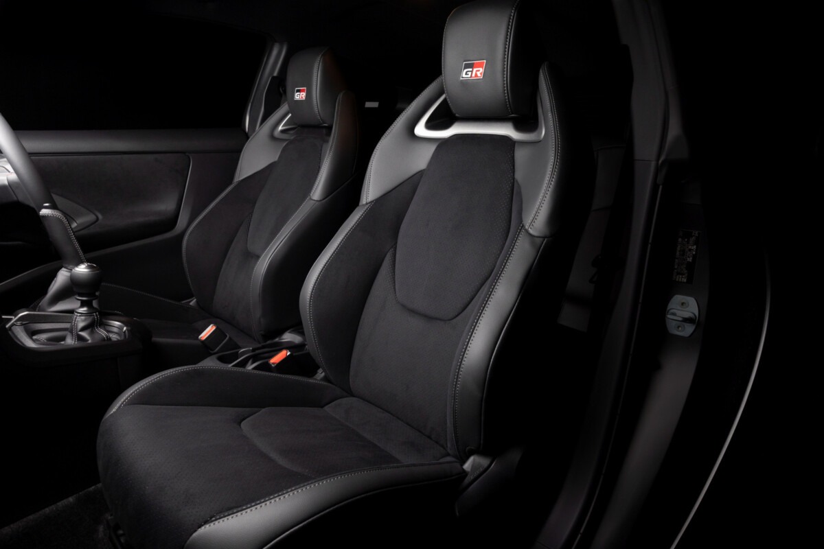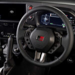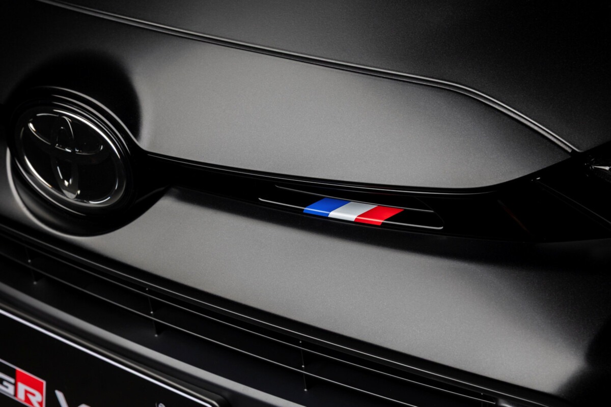 Le cuciture rosse, blu e grigie estendono il tema tricolore francese al volante, che ha un diametro complessivo più piccolo e una disposizione dei comandi ridisegnata, basata sulle impostazioni della GR Yaris Rally2. L’esclusiva impugnatura in pelle del freno a mano verticale presenta cuciture grigie, mentre una targhetta celebrativa ricorda i titoli vinti da Ogier. Sono inoltre presenti grafici dedicati per le modalità “SEB” e “MORIZO” sul display strumentale.