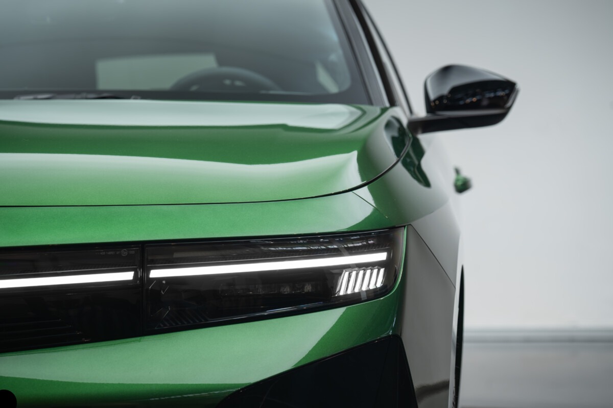I conoscitori delle Opel noteranno subito che la nuova Astra presenta un design fresco, decisamente ispirato al concept ad alte prestazioni Opel Corsa GSE Vision Gran Turismo. Il caratteristico frontale del marchio, l’Opel Vizor, è ora più affilato e progettato con maggiore precisione. Il logo Opel Blitz illuminato, che ha celebrato la sua prima apparizione con il SUV Opel Grandland, ora si trova orgogliosamente al centro. L’emblema centrale del marchio, ora illuminato, costituisce anche il punto di partenza per le strisce luminose che corrono orizzontalmente verso i fari e verticalmente nella piega del cofano. Anche qui il design si basa sulla Opel Corsa GSE Vision Gran Turismo. Il risultato: l’Opel Compass, la bussola Opel, illuminata per la prima volta come leitmotiv di design del veicolo, viene enfatizzata più fortemente di prima; la nuova Opel Astra appare ancora più affilata, tecnica e moderna. I nuovi cerchi in lega da 17 e 18 pollici sono altrettanto accattivanti quanto le nuove vernici metalliche ‘Kontur White’ e ‘Klover Green’ e sottolineano l’aspetto unico in combinazione con il tetto nero a contrasto opzionale.