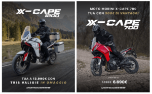Moto Morini inaugura la nuova stagione all’insegna dell’avventura con due promozioni dedicate alla gamma XCAPE, pensate per alimentare la voglia di viaggiare e rendere l’esperienza adventure ancora più accessibile, completa e pronta a partire. Prosegue fino al 30 aprile 2026 la promozione che valorizza ulteriormente la maxi adventure di Moto Morini. La X-CAPE 1200 è infatti disponibile al prezzo di 13.990€ con tris di valigie in omaggio, un plus concreto per chi sogna lunghi itinerari senza compromessi. Una dotazione che esalta la vocazione al viaggio della moto, garantendo massima capacità di carico, versatilità e comfort, fin dal primo chilometro.