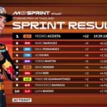 Francesco Bagnaia (#63 Ducati Lenovo Team) – 9º: “Al momento non sto riuscendo a performare come vorrei. La responsabilità è mia, in quanto ci sto mettendo più del dovuto a adattarmi alla situazione. Sicuramente, in questa Sprint le cose sono andate meglio rispetto ai turni precedenti, quindi cercheremo di utilizzare questa prestazione come base per continuare la nostra crescita in vista della gara. Le condizioni dovrebbero rimanere simili a quelle di oggi, con molto caldo ma comunque gestibile. La mescola media potrebbe aiutarci in questo senso: sarà comunque importante partire bene, soprattutto considerando la posizione in griglia, e cercare di essere nelle condizioni di poter attaccare.”