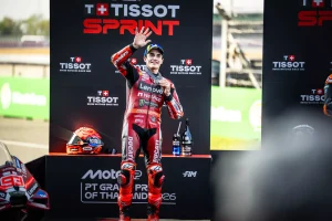 Il Ducati Lenovo Team è stato protagonista della prima Sprint della stagione con Marc Marquez, secondo al traguardo al Chang International Circuit, mentre Francesco Bagnaia chiude in nona posizione. Marquez, secondo in griglia, ha conquistato la testa della corsa alla prima curva, lottando con Bezzecchi nei primi due passaggi e successivamente con Acosta. Nel finale, dopo un sorpasso sul rivale al termine del penultimo giro, Marc ha dovuto cedere la posizione a causa di una penalità ricevuta dalla Direzione Gara. Bagnaia, dalla quarta fila, è risalito fino all’ottavo posto, transitando nono alla bandiera a scacchi. Il Ducati Lenovo Team tornerà in pista domani alle 4:40 ora italiana per il warm up, a cui seguirà il Gran Premio di Thailandia, di 26 giri, con partenza alle 9:00.