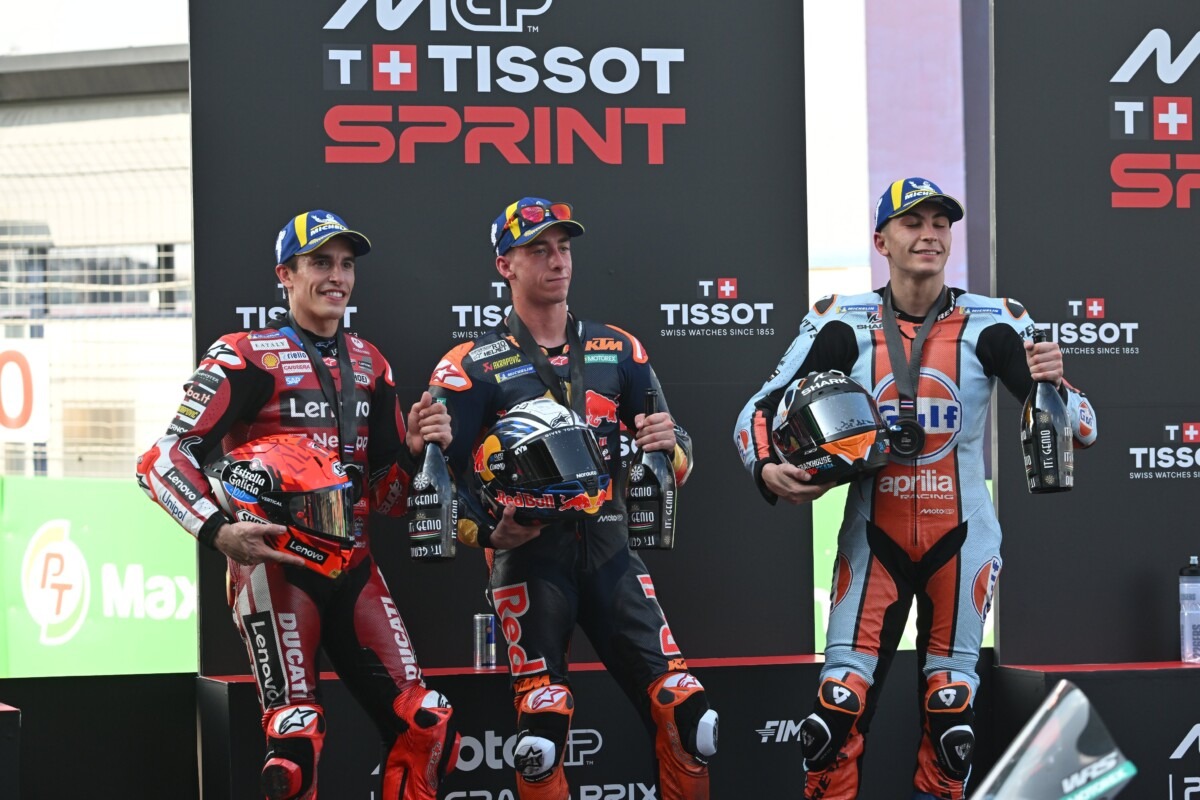 Marc Márquez (#93 Ducati Lenovo Team) – 2º: “È andata così. L’unica cosa che possiamo fare, come piloti, è adattarci al limite stabilito dalla Direzione Gara. Oggi faceva molto caldo e le condizioni della pista erano difficili; quindi, quando è caduto Bezzecchi, ho cercato di restare al comando mantenendo il passo che ritenevo più sicuro. Avrei voluto spingere negli ultimi due giri ma alla curva 5 ho quasi perso il posteriore. Sono comunque contento del risultato: a gennaio avrei firmato per ottenere nove punti nella prima Sprint, ma poi cambia tutto quando ti ritrovi in lotta per la vittoria. Non siamo ancora totalmente a posto e io devo migliorare in qualche aspetto, ed è per questo che oggi abbiamo cercato di controllare la situazione invece che spingere oltre il limite”.
