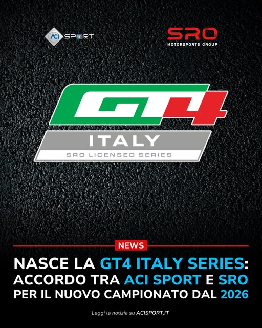 Dal 2026 il nuovo campionato nazionale riservato alle vetture GT4 si chiamerà GT4 Italy Series. L’annuncio segue la chiusura dell’accordo tra SRO Sports Limited e ACI Sport SpA, che sancisce l’ingresso dell’Italia nel sistema internazionale GT4 con una serie pienamente riconosciuta. In base all’intesa, SRO Sports Limited, proprietaria dei diritti concessi in licenza relativi alla piattaforma GT4, ha autorizzato ACI Sport SpA, promotore della GT4 Italy Series, all’utilizzo ufficiale di tali diritti per l’organizzazione e la promozione del campionato in Italia sotto l’egida dell’ACI.