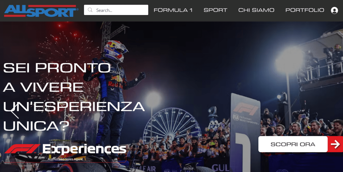 All Sport è Official Agent di F1 Experiences, ticket reseller di biglietteria ufficiale del Campionato del Mondo di Formula 1, Official reseller di MotoGP VIP Village, Tour Operator specializzato in sport experience e VIP hospitality. All Sport fornisce biglietti con accesso privilegiato ed esperienze uniche, offre posizioni riservate e pacchetti viaggio completi per eventi sportivi e di intrattenimento. Grazie a collaborazioni nazionali e internazionali All Sport propone soluzioni che possono permettervi di viaggiare nel mondo per partecipare all’evento sportivo che desiderate vedere da vicino. Che si tratti di un privato, un’azienda o un’agenzia di viaggi, vengono proposti pacchetti con ospitalità, semplice biglietteria o pacchetti di viaggio per seguire le competizioni dello sport preferito tra: