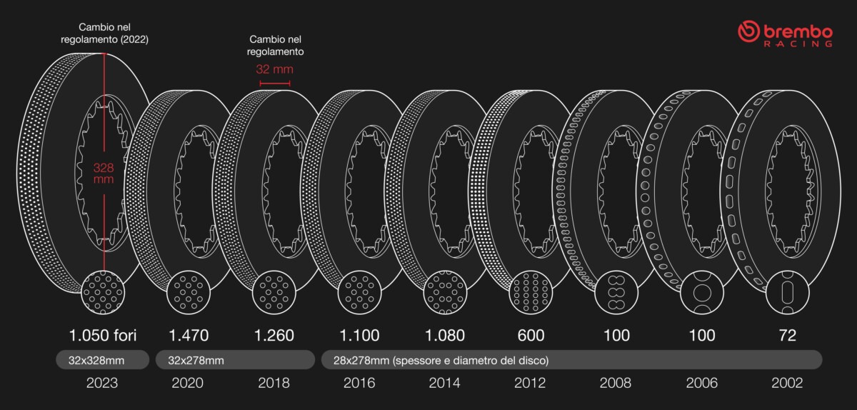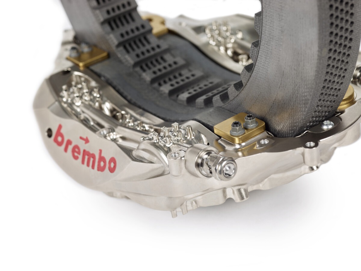 Per la prima volta dopo 30 anni, il regolamento apre scenari progettuali radicalmente nuovi. Le pinze non sono più vincolate ai tradizionali sei pistoni e due pastiglie: oggi i team possono adottare configurazioni più differenziate, fino a otto pistoni e quattro pastiglie, ottenendo maggiore coppia frenante e una distribuzione delle pressioni più uniforme. Anche i dischi vengono ripensati: fori più piccoli, ma più numerosi, migliorano la ventilazione. A completare il quadro, la possibilità di utilizzare un terzo punto di fissaggio delle pinze assicura maggiore rigidezza e una risposta del pedale più costante e precisa lungo tutto il giro.