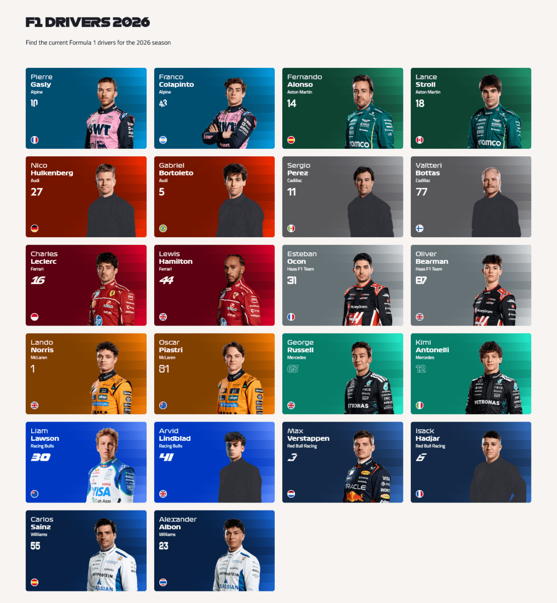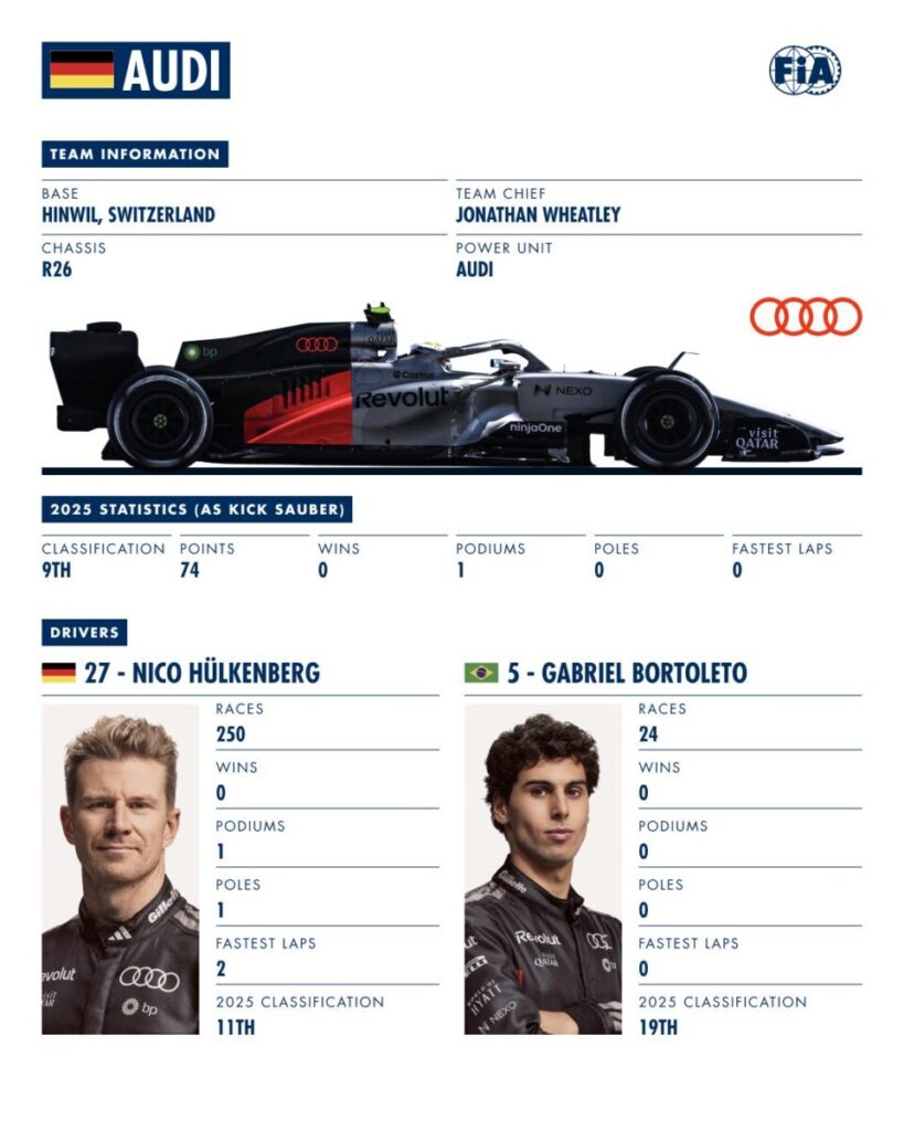 In mezzo ai soliti team che dovrebbero competere per la vittoria ci sono Haas che ha fatto bene spinta dal motore Ferrari; una Alpine con Mercedes che potrebbe sfruttare la prima parte di stagione; una Racing Bulls indecifrabile; Audi che sta imparando, stupendo molti che l’avevano pensata più indietro… come non avessero mai fatto nulla nel motorsport. Cadillac è veramente agli inizi quindi ogni giudizio è sospeso. Negativo, invece, per la Williams che non avremmo mai pensato di vedere arrivare così impreparata ai test.
