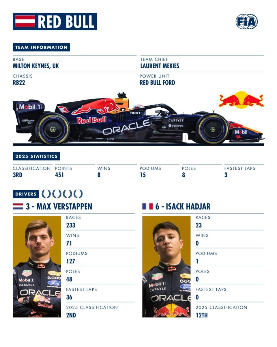 Mercedes è la favorita e si porta dietro la McLaren nella classifica dei team che a Melbourne dovrebbero fare bene da subito. Però la McLaren è leggermente sovrappeso, in Australia non dovrebbe esserlo, la Mercedes qualche problemino lo ha avuto, e nelle partenze non sono state così a posto di set up come la Ferrari. Poi viene la Red Bull che ha stupito con il suo motore in collaborazione con Ford. In molti non avrebbero scommesso sul team di Max, ma invece potrebbe essere la sorpresa della stagione.