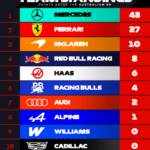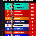 Al via Leclerc è passato dalla quarta alla prima posizione e per una decina di giri scambio di posizioni continue tra lui e Russell, con il britannico che ha poi preso la leadership. Sotto VSC (dopo il ritiro della Red Bull di Isack Hadjar) entrambe le Mercedes sono tornate ai box per il pitstop, mentre le Ferrari sono rimaste fuori (con Hamilton che ha fatto presente che almeno una macchina avrebbe dovuto cambiare gomme, ma niente….). Dopo il ritiro della Cadillac di Valtteri Bottas altra VSC e sempre Ferrari in pista. Ovviamente quando le SF-26 hanno effettuato la sosta Russell e Antonelli hanno preso la testa della gara, mantenendola fino alla bandiera a scacchi, riuscendo a gestire i pneumatici. La strategia ha pagato con Russell che ha chiuso con 2,9s sul compagno di squadra, conquistando la sesta vittoria in carriera.