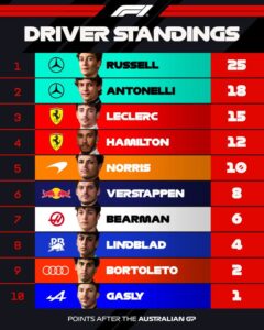 Tra le note positive di questo inizio di stagione c’è anche Arvid Lindblad, che al suo esordio ha portato i primi punti alla Racing Bulls grazie a un buon ottavo posto. A punti anche Oliver Bearman, Gabriel Bortoleto con l’Audi e Pierre Gasly. Distacchi e vetture a pieni giri? Normale quando c’è un cambio di regoalmento così drastico. In casa Aston Martin c’è invece ancora molto lavoro da fare. L’eventuale annullamento dei GP di Bahrain e Arabia Saudita potrebbe offrire un po’ di tempo in più per recuperare il terreno perso. Per tutte le squadre saranno comunque giorni di analisi intensi in vista della prossima gara in Cina.