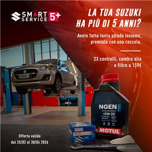 Con Smart Service 5+, Suzuki mette a disposizione dei propri clienti una soluzione semplice, trasparente e conveniente per la manutenzione ordinaria delle vetture che hanno superato i cinque anni di vita. Una fase in cui la cura del veicolo diventa ancora più importante per garantire affidabilità, efficienza e sicurezza nel tempo. I 23 controlli tecnici inclusi consentono di verificare lo stato generale dell’auto, dalla meccanica ai principali sistemi di sicurezza, offrendo al cliente una panoramica completa sulle condizioni del veicolo e contribuendo a mantenere inalterate l’efficienza e le prestazioni. L’iniziativa si inserisce nell’ecosistema di servizi post-vendita Suzuki e affianca il programma Suzuki 3Plus, che accompagna i Clienti nei primi anni di vita della vettura offrendo 3 anni o 100.000 km di garanzia, 3 anni di assistenza stradale 24 ore su 24 e 3 anni di controlli dedicati presso la rete ufficiale.