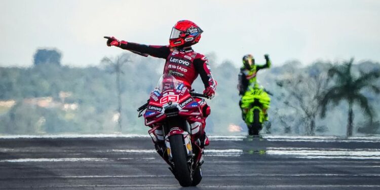Marc Marquez vince la Sprint in Brasile, davanti a Fabio Di Giannantonio e a Jorge Martin, al primo podio con i colori Aprilia Racing davanti al compagno di squadra Marco Bezzecchi, quarto. Il pilota del Pertamina Enduro VR46 Racing Team sembrava avere in tasca la vittoria ma, a tre giri dalla bandiera a scacchi, lo spagnolo della Ducati l’ha passato dopo una rincorsa durata otto giri. Sotto la bandiera a scacchi, dietro al numero 89, Ai Ogura (Trackhouse MotoGP Team), che ha fatto così salire a tre il numero delle RS-GP fra i primi cinque. A seguire Quartararo, Alex Marquez (BK8 Gresini Racing MotoGP), Francesco Bagnaia (Ducati Lenovo Team) e Pedro Acosta (Red Bull KTM Factory Racing), che resta in testa alla classifica con 2 punti più di Bezzecchi. Domani alle 19.00 la gara.