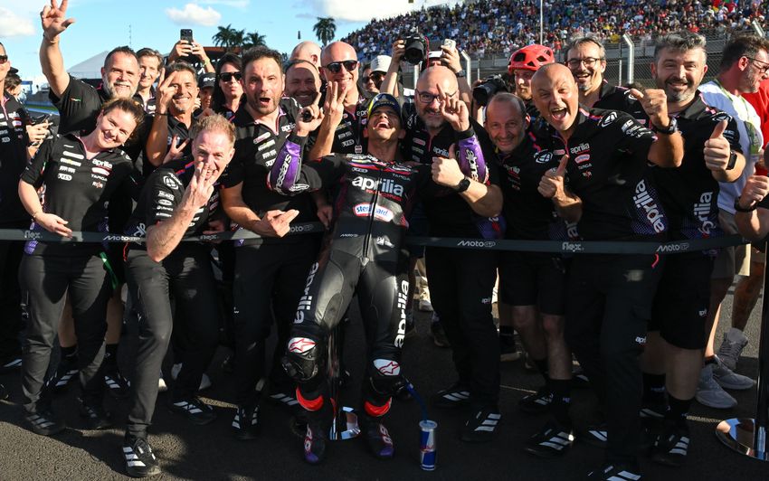 Marc Marquez vince la Sprint in Brasile, davanti a Fabio Di Giannantonio e a Jorge Martin, al primo podio con i colori Aprilia Racing davanti al compagno di squadra Marco Bezzecchi, quarto. Il pilota del Pertamina Enduro VR46 Racing Team sembrava avere in tasca la vittoria ma, a tre giri dalla bandiera a scacchi, lo spagnolo della Ducati l’ha passato dopo una rincorsa durata otto giri. Sotto la bandiera a scacchi, dietro al numero 89, Ai Ogura (Trackhouse MotoGP Team), che ha fatto così salire a tre il numero delle RS-GP fra i primi cinque. A seguire Quartararo, Alex Marquez (BK8 Gresini Racing MotoGP), Francesco Bagnaia (Ducati Lenovo Team) e Pedro Acosta (Red Bull KTM Factory Racing), che resta in testa alla classifica con 2 punti più di Bezzecchi. Domani alle 19.00 la gara.