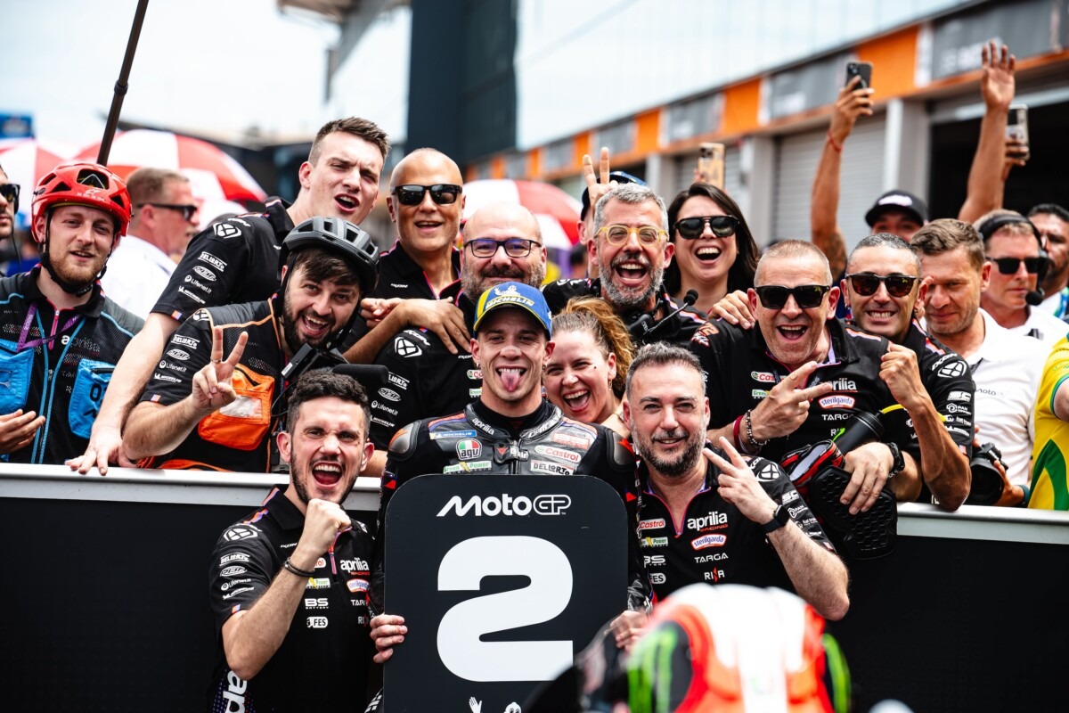 La Sprint all’Autódromo Internacional de Goiânia – Ayrton Senna si è chiusa con un bilancio positivo per Aprilia Racing. Jorge Martín ha fatto una buona Q2, condizionata però da una caduta negli ultimi minuti mentre stava completando il giro più veloce, che non gli ha permesso di migliorare il proprio tempo. In partenza dalla quinta posizione, il pilota spagnolo ha poi firmato una sprint solida, chiudendo in terza posizione e conquistando il suo primo podio con Aprilia Racing. Marco Bezzecchi, dopo aver superato la soglia della Q1, ha ottenuto la seconda posizione in griglia al termine della Q2. Il pilota italiano ha firmato una sprint competitiva chiudendo in quarta posizione. Da sottolineare anche la prestazione di Ai Ogura, del Trackhouse MotoGP Team, quinto al traguardo e terza Aprilia in top 5.