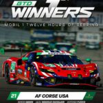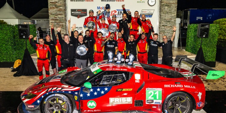 Alla 12 Ore di Sebring – seconda prova dell’IMSA SportsCar Championship e dell’IMSA Endurance Cup – la Ferrari ha conquistato la prima storica vittoria della nuova 296 GT3 Evo grazie al successo ottenuto da AF Corse USA nella classe GTD con i piloti ufficiali Antonio Fuoco e Lilou Wadoux, affiancati da Simon Mann. In GTD Pro, invece, il miglior risultato per le vetture della Casa di Maranello è il settimo posto ottenuto dal team Triarsi Competizione.