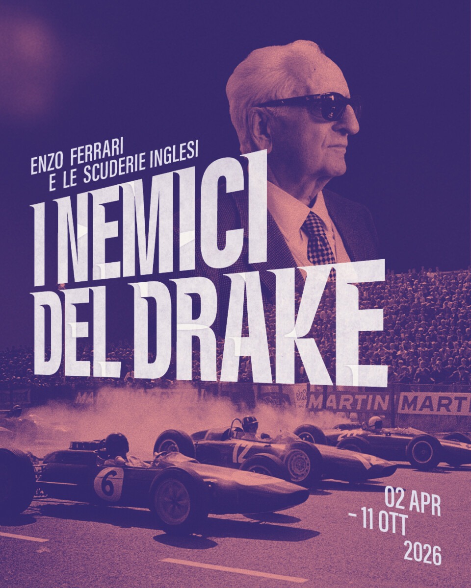 In programma al MAUTO – Museo Nazionale dell’Automobile – da giovedì 2 aprile a domenica 11 ottobre 2026 – la mostra I Nemici del Drake. Enzo Ferrari e le scuderie inglesi a cura di Carlo Cavicchi e Mario Donnini con Maurizio Cilli.