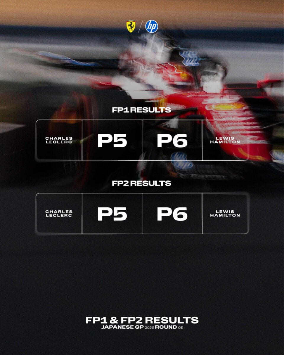 La Scuderia Ferrari ha completato il programma previsto nel venerdì di prove libere del GP del Giappone, lavorando sulla messa a punto delle SF-26 su un circuito che nel corso della giornata ha presentato condizioni di grip in continua evoluzione, anche a causa della riasfaltatura di ampie porzioni del tracciato di Suzuka. La squadra ha portato avanti il lavoro previsto senza intoppi, raccogliendo dati sia sul giro secco che in ottica gara, con l’obiettivo di ottimizzare il pacchetto in vista del resto del weekend. Sul fronte della prestazione sul giro singolo sembra esserci del margine di miglioramento e questa sera il team si concentrerà sull’analisi delle informazioni raccolte per fare un ulteriore passo avanti in vista delle qualifiche di domani, previste alle ore 15 locali (7 CET). Resta comunque del lavoro da fare in tutte le aree per per mettere insieme tutti gli elementi e massimizzare il potenziale della vettura.