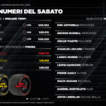 Durante le FP3, i team si sono concentrati principalmente su run brevi, utilizzando solo le mescole C2 e C3. La terza sessione di prove libere è stata dominata da Mercedes, con Kimi Antonelli e George Russell rispettivamente primo e secondo. A maggiore distanza, Charles Leclerc ha chiuso in terza posizione. Domenica le temperature toccheranno nuovamente i 20 gradi, anche se è prevista una maggiore nuvolosità. Questo dovrebbe abbassare le temperature dell’asfalto rispetto a ieri e oggi.