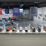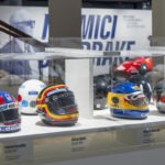In esposizione anche 28 caschi, 4 tute – indossate rispettivamente da Jim Clark nel 1965, da Jackie Stewart e da Vittorio Brambilla nel 1972 e da Riccardo Patrese nel 1978 -, i programmi delle gare – uno per anno dal 1958 al 1988, ognuno dei quali arriva da un Gran Premio diLerente nei 5 continenti – e il motore Ford Cosworth DFV, definito “una rivoluzione con le candele accese”: progettato nel 1967 da Keith Duckworth e Mike Costin con il sostegno lungimirante della Ford Motor Company, debuttò sulla Lotus 49 voluta da Colin Chapman.