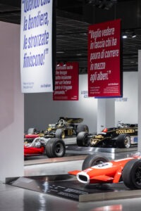Enzo Ferrari li chiamava, con un po’ di supponenza, “i garagisti”: erano le squadre inglesi che – tra gli anni 60 e 80 – misero in discussione il dominio della Ferrari, fino ad allora protagonista incontrastata della Formula 1. Con strutture leggere, telai rivoluzionari e una straordinaria rapidità di sperimentazione, questi team indipendenti trasformarono piccoli atelier tecnici in avversari temibili, capaci di battere Maranello in pista e cambiare per sempre gli equilibri del campionato. Una rivoluzione, quella inglese, che attraversava la musica, la moda, la fotografia e il cinema, definendo un periodo di straordinaria vivacità e ottimismo, caratterizzato da un’esplosione di creatività: un’energia travolgente che la mostra restituisce con forza, trasformando l’allestimento in un racconto immersivo capace di rendere tangibile lo spirito di un’epoca che ha cambiato per sempre non solo il linguaggio della velocità, ma l’immaginario collettivo.