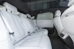 All’interno, P7+ assicura un eccezionale livello di comfort, grazie all’impiego di materiali di alta qualità e finiture curate nei dettagli. Il rivestimento del tetto in microfibra, morbido al tatto e ispirato al cashmere, si combina con sedili in pelle Nappa traforata, progettati per offrire traspirabilità e benessere anche nei viaggi più lunghi. L’intero abitacolo è realizzato con materiali e trattamenti a basso impatto ambientale, eliminando processi tradizionali come la cromatura ad acqua e contribuendo all’obiettivo di ridurre le emissioni nei cicli produttivi. A completare l’esperienza, P7+ adotta un articolato sistema di isolamento acustico, che conta fino a 62 punti mirati per la riduzione del rumore, 26 materiali fonoisolanti applicati alle cavità e 36 elementi fonoassorbenti: tutte soluzioni pensate per assicurare un elevato livello di silenziosità e comodità a bordo.