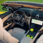 Al centro della scena, l’affascinante GranCabrio che sfoggia una novità assoluta nella storia del Marchio: la prima capote completamente personalizzata, attraverso il programma Fuoriserie. Un primato che segna una nuova frontiera per il modello, già unico nel panorama automotive per offrire anche una versione BEV. Realizzata in un intenso blu Maserati, la capote celebra i cento anni del Tridente grazie a un raffinato gioco di lavorazioni che combinano intreccio e ricamo. In dettaglio, il simbolo iconico si declina in una doppia interpretazione, con richiami cromatici al bianco e al lime ispirati alle palline da tennis, mentre la firma Maserati sul C-pillar completa un insieme di straordinaria eleganza e coerenza stilistica. Questa innovazione apre nuove prospettive nel mondo della personalizzazione Fuoriserie, introducendo a catalogo diverse possibilità di configurazione della capote, dal colore ai dettagli sartoriali fino a soluzioni bespoke sviluppate su richiesta del cliente. La vettura è esposta presso il Commercial Village e veste una livrea Verde Royale e interni ICE.
