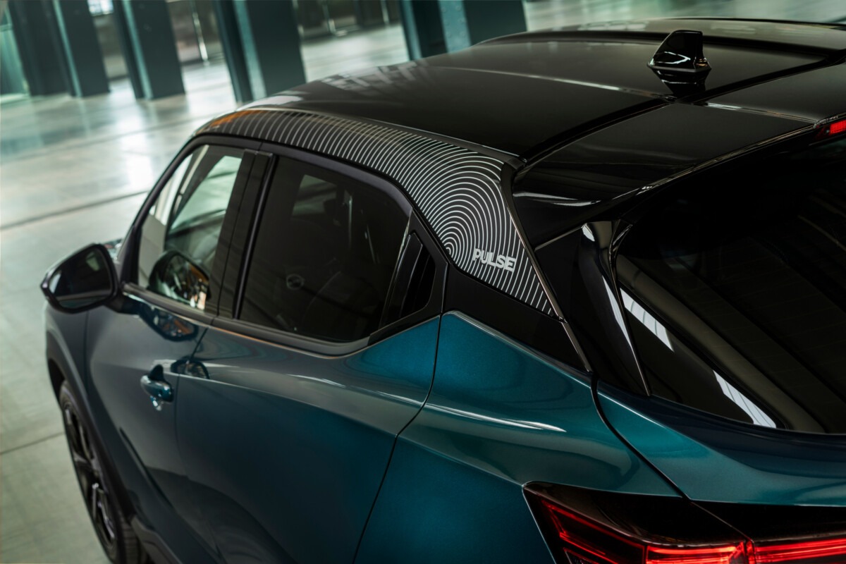 Vernice bi-colore con tetto nero di serie e disponibile in tre combinazioni: nuovo colore Deep Ocean, disponibile solo per questa versione e abbinato a cerchi da 19’’ AERO con inseriti dello stesso colore della carrozzeria, Ceramic Grey e Pearl White, sempre con cerchi da 19’’ AERO. Sui montanti del tetto nel nuovo allestimento Pulse spicca una grafica ispirata alle onde sonore, con il nome Pulse integrato nel motivo.
